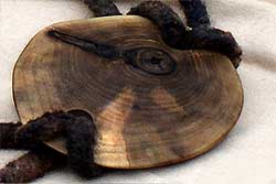 Filzschnur(handgefilzt, durch 2 Löcher gebunden) mit Scheibe (Walnuss)